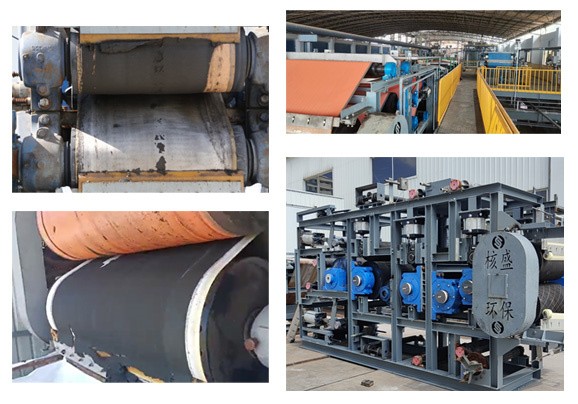 5、卸餅:當(dāng)風(fēng)干過程完成后,板框組打開,驅(qū)動(dòng)機(jī)構(gòu)帶動(dòng)濾布運(yùn)行,濾餅隨濾布從壓濾機(jī)兩邊卸出。